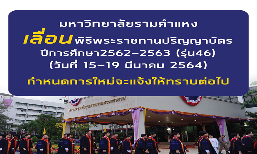 มหาวิทยาลัยจึงขอประกาศเลื่อนพิธีพระราชทานปริญญาบัตรครั้งนี้ไปก่อน และจะแจ้งกำหนดการใหม่ให้ทราบต่อไป