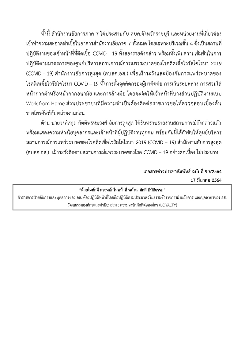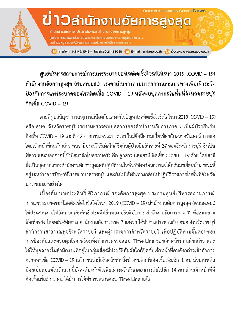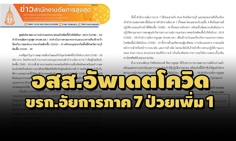 (ข่าวประกอบ : ขรก.อัยการภาค 7 ติดโควิด ร่วมงานเดียวกับ อสส.-รองโฆษกฯแจงไม่ใช่กลุ่มเสี่ยง)