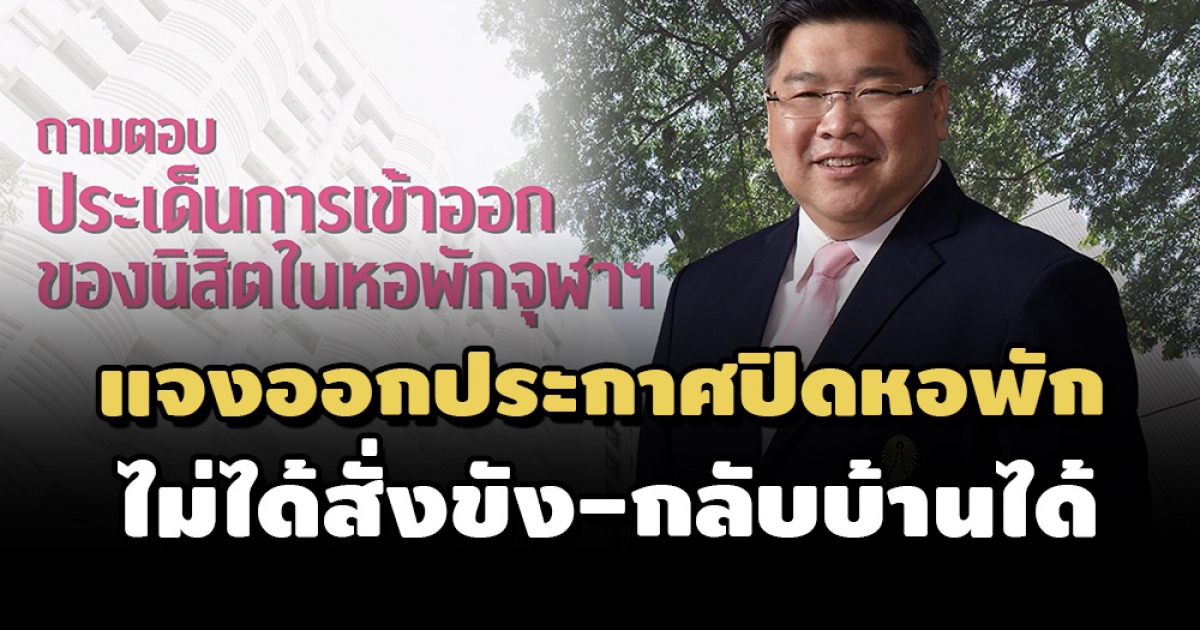 รองอธิการบดีจุฬาฯ แจงกรณีออกประกาศปิดหอพักในจุฬาฯ 14 วัน ไม่ได้สั่งขัง นิสิตกลับบ้านได้ ชี้เหตุทำไปเพื่อความปลอดภัยของนิสิต พร้อมมีบริการตรวจหาเชื้อโควิดให้ฟรี หากนิสิตต้องการกลับบ้าน ส่วนผู้ที่ยังพักอยู่ภายในหอพักจะมีสวัสดิการทำประกันโควิด มอบสัญญาณอินเตอร์เน็ต-ซิมให้ ขอให้มั่นใจในความดูแลของมหาวิทยาลัย