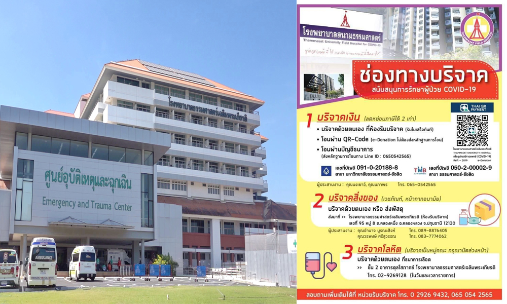 รพ.ธรรมศาสตร์เปิดรับบริจาค หนุนสร้างโรงพยาบาลสนามรับมือโควิด-19 ระลอก 3 เผยใบเสร็จใช้ลดหย่อนภาษีได้ 2 เท่า