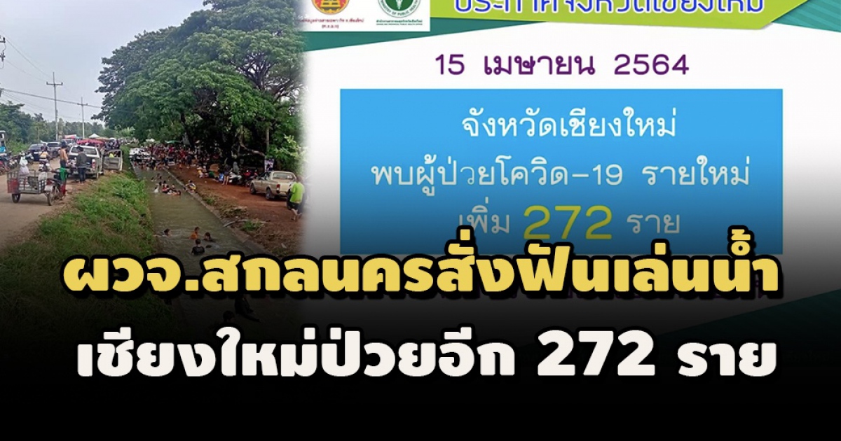 ผวจ.สกลนครสั่งฟันคนจัดเล่นน้ำสงกรานต์เย้ยโควิด ขณะที่เชียงใหม่ป่วยเพิ่มอีก 272 ราย ส่วนโคราชพบป่วยเพิ่ม 28 ราย เป็นชาวญี่ปุ่นเที่ยวคาราโอเกะ 5 ราย