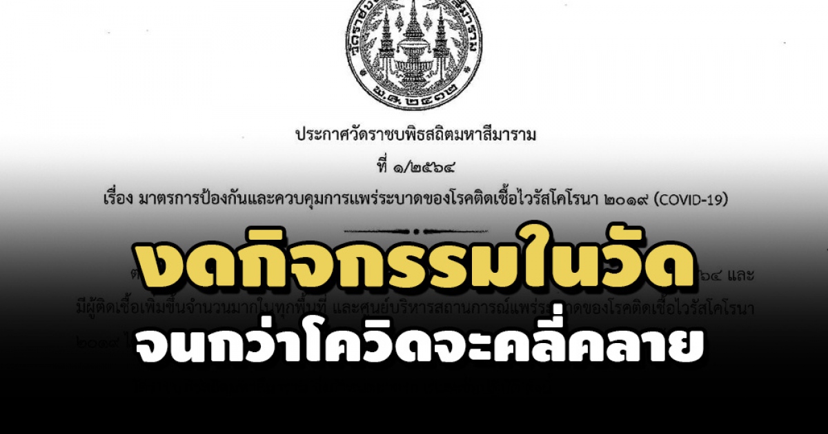 วัดราชบพิธฯ กำหนดมาตรการ 12 ข้อรับมือโควิดระบาด งดจัดกิจกรรมในวัด งดเดินทาง - งดรับพระอาคันตุกะมาพำนัก จนกว่าสถานการณ์จะคลี่คลาย