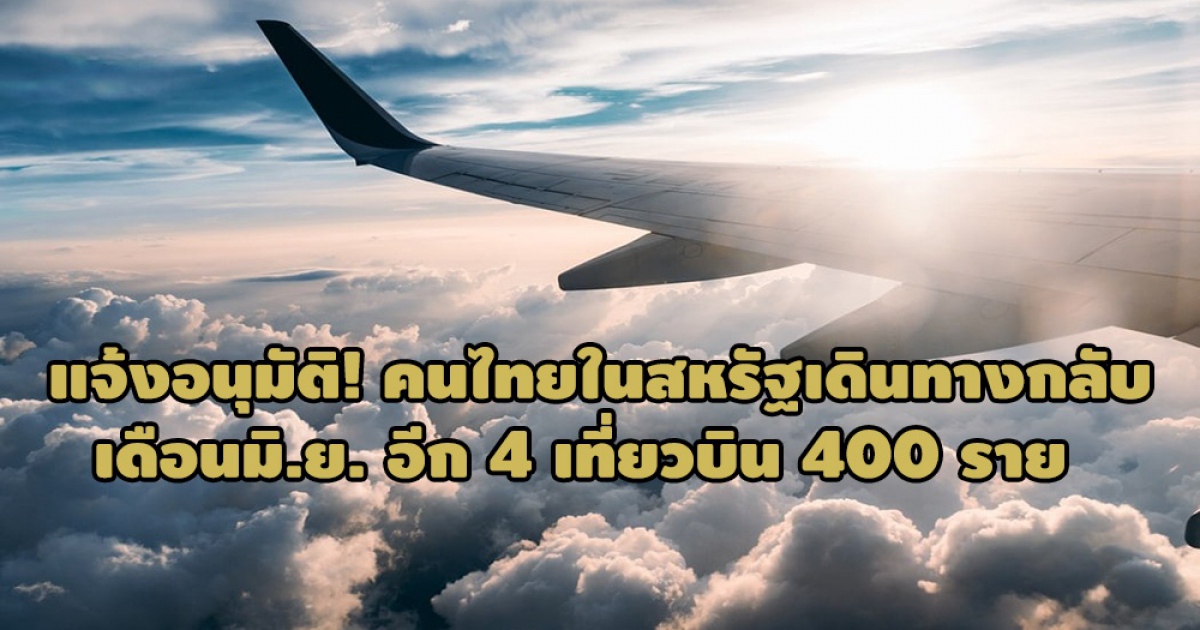 อีกลอต! สถานทูตไทยกรุงวอชิงตันแจ้งข้อมูลอำนวยความสะดวกส่งคนไทยเดินทางกลับประเทศไทยเพิ่มเติมเดือน มิ.ย.2564 ถึง วันที่ 12 อีก 4 เที่ยวบิน 400 ราย เดือน พ.ค. อนุมัติ 800