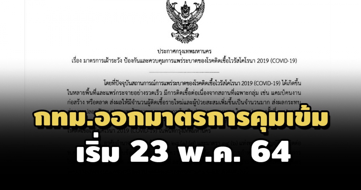 ทั้งนี้ ตั้งแต่วันที่ 23 พ.ค 64 เป็นต้นไป