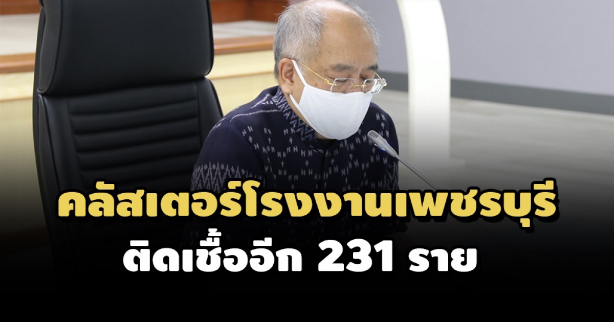 คลัสเตอร์โรงงาน จ.เพชรบุรี ติดโควิดอีก 231 ราย สะสมรวม 3,076 ราย ทำให้จังหวัดเพชรบุรีมีผู้ติดเชื้อจากการระบาดระลอกใหม่ รวม 3,715 ราย ขณะที่บางโรงงานขนาดใหญ่พบอัตราความเสี่ยงติดเชื้อสูงกว่าเกณฑ์ที่ สธ. กำหนด เล็งใช้ Factory Quarantine รองรับการระบาดในโรงงาน