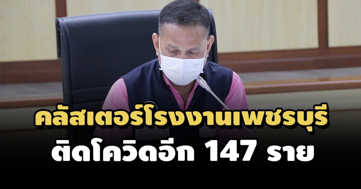 คลัสเตอร์โรงงานเพชรบุรี ติดโควิดอีก 147 ราย สะสมรวม 5,207 ราย ทำให้จังหวัดเพชรบุรีมีผู้ติดเชื้อจากการระบาดระลอกใหม่ รวม 5,912 ราย ด้านคกก.โรคติดต่อจังหวัด ขยายเวลา สั่งปิดสถานที่-ใช้อาคารในสถานประกอบการเพื่อควบคุมโรค ชั่วคราว