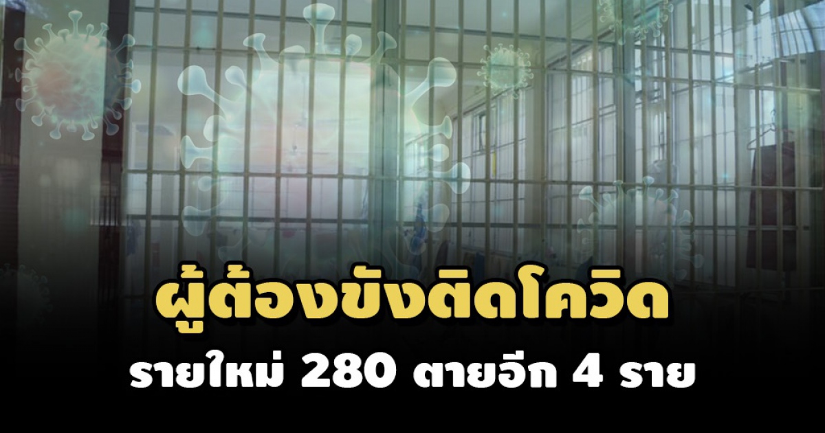 กรมราชทัณฑ์เผยผู้ต้องขังติดเชื้อโควิดเพิ่ม 280 ราย เสียชีวิตอีก 4 ราย ขณะที่หายป่วยแล้ว 17,833 ราย หรือกว่า 60% จากยอดสะสม พร้อมเดินหน้าฉีดวัคซีน-สร้างภูมิคุ้มกันเพิ่ม โดยฉีดไปแล้ว 11 เรือนจำ 20,336 ราย