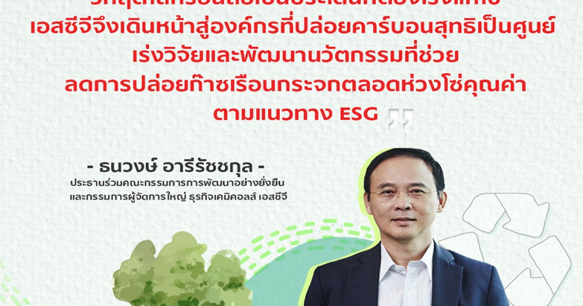 “การเปลี่ยนแปลงของสภาพภูมิอากาศเป็นประเด็นเร่งด่วนที่ต้องรีบจัดการและให้ความสำคัญ เอสซีจีจึงตั้งเป้าหมายลดการปล่อยก๊าซเรือนกระจกให้เข้มข้นยิ่งขึ้น โดยเดินหน้าสู่องค์กรที่ปล่อยคาร์บอนสุทธิเป็นศูนย์ (Net Zero) ภายในปี 2050 เพื่อสนับสนุนการควบคุมอุณหภูมิเฉลี่ยของโลกไม่ให้สูงขึ้นเกิน 1.5 องศาเซลเซียสตามความตกลงปารีส (Paris Agreement) โดยจะเพิ่มสัดส่วนการใช้พลังงานชีวมวลและแหล่งพลังงานทดแทน ปรับปรุงประสิทธิภาพการใช้พลังงานให้สูงขึ้น และเร่งวิจัย พัฒนาเทคโนโลยีนวัตกรรมสินค้า บริการ และโซลูชันที่ตอบโจทย์ความต้องการของลูกค้าควบคู่ไปกับการลดการปล่อยก๊าซเรือนกระจกตลอดห่วงโซ่คุณค่าในทุกกลุ่มธุรกิจ พร้อมนำมาตรการด้านเศรษฐศาสตร์กำหนดราคาคาร์บอนภายในองค์กร (Internal Carbon Pricing) มาสนับสนุนการตัดสินใจลงทุนในโครงการที่มีส่วนช่วยลดก๊าซเรือนกระจก รวมทั้งฟื้นฟูพื้นที่ป่าผ่านโครงการต่าง ๆ ทั้งภายในและภายนอกพื้นที่โรงงานกว่า 660 ไร่ เพื่อเป็นแหล่งดูดซับก๊าซเรือนกระจกและเพิ่มความหลากหลายทางชีวภาพ” นี่คือความตั้งใจของเอสซีจีที่ ‘ธนวงษ์ อารีรัชชกุล’ ประธานร่วมคณะกรรมการการพัฒนาอย่างยั่งยืน และกรรมการผู้จัดการใหญ่ ธุรกิจเคมิคอลส์ เอสซีจี กล่าวถึงการขับเคลื่อนธุรกิจของเอสซีจีต่อจากนี้ไปสู่แนวทาง ESG อย่างมุ่งมั่น โดยเฉพาะการรับมือกับภาวะฉุกเฉินด้านภูมิอากาศอย่างเต็มที่