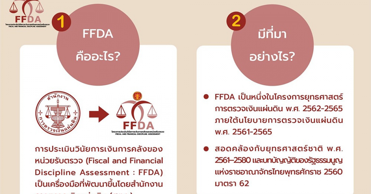 สตง. เปิดตัว “โครงการประเมินวินัยการเงินการคลังของหน่วยรับตรวจ” หรือ FFDA เพื่อเป็นมาตรการเชิงบวกในการส่งเสริมสนับสนุนให้หน่วยงานของรัฐรักษาวินัยการเงินการคลังอย่างเคร่งครัด พร้อมตั้งเป้า นำร่องปี 2564 ประเมินองค์การบริหารส่วนจังหวัดและเทศบาลกว่า 2,500 แห่ง ทั่วประเทศ
