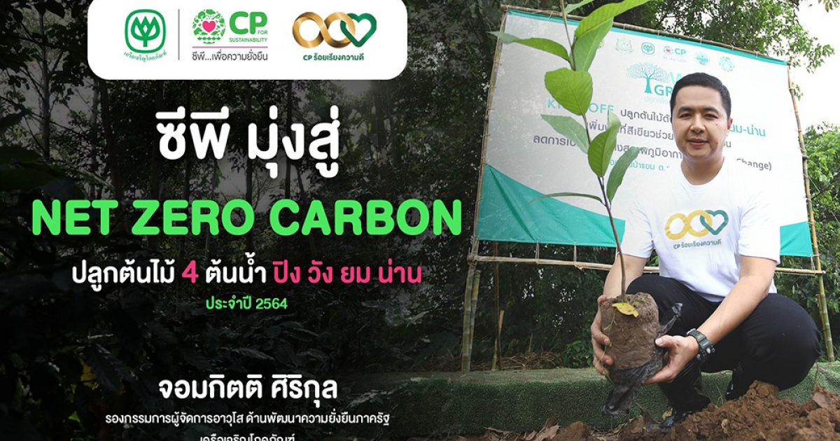 ซีพีตอกย้ำเป้าหมายมุ่งสู่ Net Zero Carbon ผนึกกำลังภาคีเครือข่าย เร่งปลูกต้นไม้ เพิ่มพื้นที่ป่าต้นน้ำภาคเหนือ ปิง วัง ยม น่าน สร้างป่า สร้างงาน สร้างอาชีพ