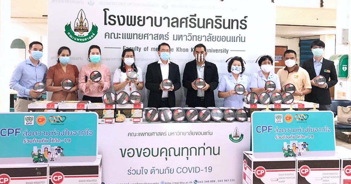 จากสถานการณ์การแพร่ระบาดของไวรัสโควิด-19 มีรายงานว่าพบผู้ป่วยในทุกจังหวัดของประเทศไทย การให้กำลังใจนักรบด่านหน้าเพื่อสู้ศึกโควิดเป็นสิ่งสำคัญ ล่าสุด บริษัท เจริญโภคภัณฑ์อาหาร จำกัด (มหาชน) หรือ ซีพีเอฟ โดยธุรกิจสุกร ได้นำผลิตภัณฑ์อาหารพร้อมทานเมนูบะหมี่เกี๊ยวกุ้ง ในโครงการ "CPF ส่งอาหารจากใจ ร่วมต้านภัยโควิด-19” มอบให้ โรงพยาบาลศรีนครินทร์ คณะแพทยศาสตร์ มหาวิทยาลัยขอนแก่น เป็นครั้งที่สอง เพื่อแทนคำขอบคุณและลดภาระการจัดเตรียมอาหารแก่บุคลากรทางการแพทย์ได้ปฏิบัติงานดูแลผู้ป่วยได้อย่างเต็มที่