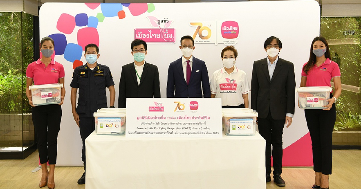 นายสาระ ล่ำซำ ประธานเจ้าหน้าที่บริหาร นายแพทย์วุฒิวงศ์ สมบุญเรืองศรี ผู้ช่วยกรรมการผู้จัดการอาวุโส บริษัท เมืองไทยประกันชีวิต จำกัด (มหาชน) ร่วมกับมูลนิธิเมืองไทยยิ้ม โดยนางพิตราภรณ์ บุณยรัตพันธุ์ รองประธานกรรมการมูลนิธิเมืองไทยยิ้ม บริจาคอุปกรณ์ปกป้องทางเดินหายใจแบบจ่ายอากาศบริสุทธิ์ Powered Air Purifying Respirator (PAPR) จำนวน 5 เครื่องให้กับทัณฑสถานโรงพยาบาลราชทัณฑ์ เพื่อนำไปเป็นอุปกรณ์ป้องกันให้กับบุคลากรทางการแพทย์ ได้ใช้ประโยชน์ในการรักษาผู้ป่วยวิกฤตติดเชื้อไวรัสโคโรนา 2019 (COVID-19) โดยมีนายแพทย์วัฒน์ชัย มิ่งบรรเจิดสุข นายแพทย์ชำนาญการพิเศษ รักษาราชการแทนผู้อำนวยการ ทัณฑสถานโรงพยาบาลราชทัณฑ์ นายมนตรี อุปมัย หัวหน้ากลุ่มงานยุทธศาสตร์และแผน ทัณฑสถานโรงพยาบาลราชทัณฑ์ รับมอบ ณ เมืองไทยประกันชีวิต สำนักงานใหญ่