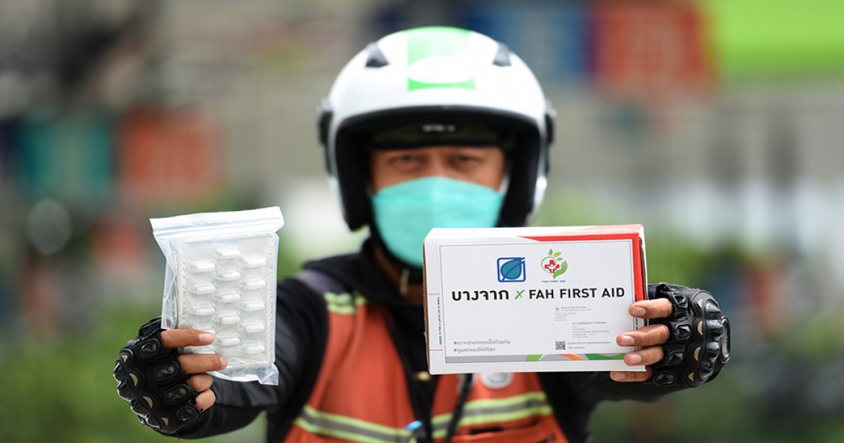 ด้วยสถานการณ์ที่รุนแรงขึ้น มีผู้ลงทะเบียนรับยาเพิ่มขึ้น ต้องกระจายให้ทั่วถึงในเวลาอันรวดเร็ว เมื่อวันที่ 22 กรกฎาคมที่ผ่านมา บางจากฯ จึงได้ร่วมสนับสนุนภารกิจของกรมการแพทย์แผนไทยฯด้วยการจัดโครงการนำร่อง “บางจาก x FAH FIRST AID” ใช้ปั๊มบางจาก สุขุมวิท 62 เป็นจุดกระจายยาสารสกัดฟ้าทะลายโจร โดยมีผู้ขับขี่จักรยานยนต์ไฟฟ้ารับจ้างในโครงการ วิน โน หนี้ ของบริษัทฯ เป็นผู้นำส่งถึงบ้านพักของประชาชน เริ่มนำร่องในพื้นที่เขตพระโขนง บางนา และคลองเตย