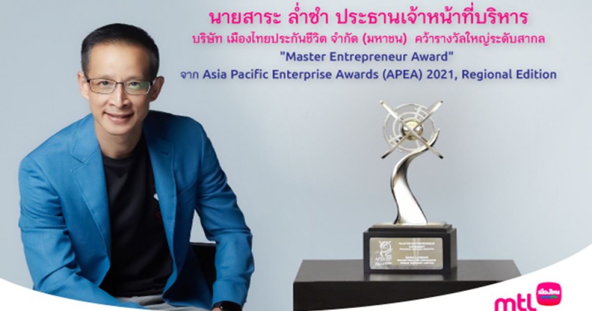 นายสาระ ล่ำซำ ประธานเจ้าหน้าที่บริหาร บริษัท เมืองไทยประกันชีวิต จำกัด (มหาชน) คว้ารางวัลใหญ่ระดับสากล “Master Entrepreneur Award” ซึ่งจัดโดย Asia Pacific Enterprise Awards (APEA) 2021, Regional Edition เป็นรางวัลที่มอบให้กับผู้บริหารองค์กรธุรกิจประกันชีวิตที่มีคุณสมบัติโดดเด่นในด้านบริหารงาน การพัฒนานวัตกรรมอย่างต่อเนื่อง มีวิสัยทัศน์กว้างขวาง รวมทั้งการพัฒนาศักยภาพบุคคลากร เพื่อสร้างความแข็งแกร่งแก่ธุรกิจให้สามารถเติบโตได้อย่างมั่นคงและยั่งยืน โดยนายสาระ ล่ำซำ ถือเป็นผู้บริหารเพียงรายเดียวจากธุรกิจประกันชีวิตในประเทศไทยที่ได้รับรางวัลแห่งภูมิภาคเอเชียในครั้งนี้ ณ เมืองไทยประกันชีวิต สำนักงานใหญ่