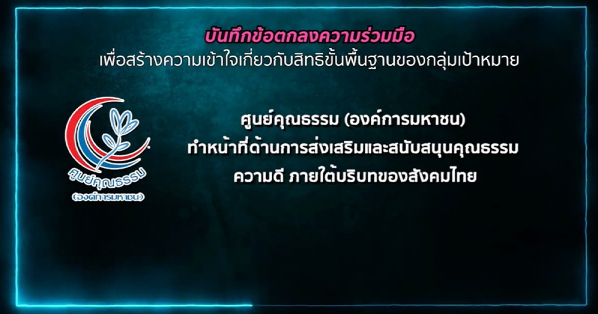 ศูนย์คุณธรรม ร่วมลงนามบันทึกข้อตกลงความร่วมมือ เรื่อง การกำกับดูแลการนำเสนอเนื้อหารายการบนหลักสิทธิพื้นฐานของเด็กและเยาวชนสตรี คนพิการ ผู้สูงอายุ ผู้ด้อยโอกาส และผู้มีความหลากหลายทางเพศในกิจการกระจายเสียงและกิจการโทรทัศน์