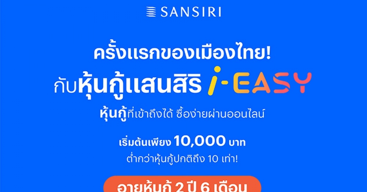 แสนสิริ จับมือ ไทยพาณิชย์ ปฏิวัติการลงทุนในหุ้นกู้ เปิดตัว “หุ้นกู้แสนสิริ i-EASY” หุ้นกู้ที่ทุกคนลงทุนง่าย ผ่านออนไลน์ด้วยเงินเริ่มต้น 10,000 บาท พลิกโฉมการลงทุน ในหุ้นกู้บริษัทเอกชนที่ทุกคนเข้าถึงได้และมีโอกาสซื้อเท่าเทียมกัน ครั้งแรกของเมืองไทย!