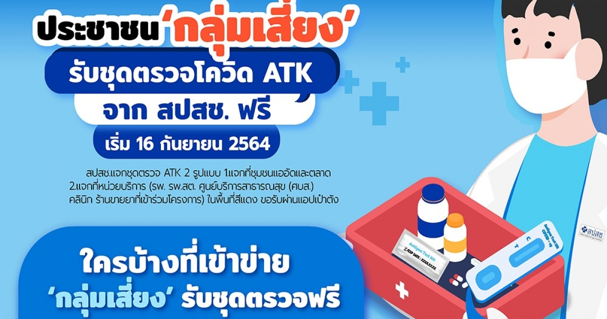 สปสช. นับถอยหลังแจก ATK 8.5 ล้านชุดให้ประชาชนกลุ่มเสี่ยงตรวจโควิดด้วยตนเอง เผยมีหน่วยงาน รพ. ร้านยา และคลินิก ส่งข้อมูลขอรับชุดตรวจ ATK ทั่วประเทศแล้วกว่า 5.5 ล้านชุด จับมือ KTB พัฒนาระบบรายงานติดตามการแจกและผลตรวจผ่าน Dashboard เปิดสายด่วน 1330 กด 17 ช่องทางประชาชนสอบถามเฉพาะกรณี แจก ATK พร้อมเฝ้าระวังจำนวนผู้ติดเชื้อโควิด-19 เพิ่มหลัง 16 ก.ย. นี้