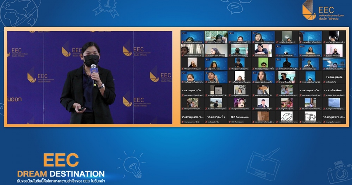 วันที่ 14 และ 15 ก.ย. 2564 นางสาวทัศนีย์ เกียรติภัทราภรณ์ รองเลขาธิการสำนักงานคณะกรรมการนโยบายเขตพัฒนาพิเศษภาคตะวันออก (สกพอ.) ให้เกียรติเป็นประธานเปิด และกล่าวให้โอวาทแก่ คณะครู และนักเรียนที่เข้าร่วมกิจกรรม EEC Dream Destination “ฝันของน้องในวันนี้ คือโลกแห่งความสำเร็จของ EEC ในวันหน้า” ภายใต้โครงการสร้างการรับรู้เพื่อเชื่อมโยงแนวทางการพัฒนา EEC โดย สกพอ. จัดขึ้นในรูปแบบ New Normal ผ่านสื่ออิเล็กทรอนิกส์ทางระบบ Zoom Application