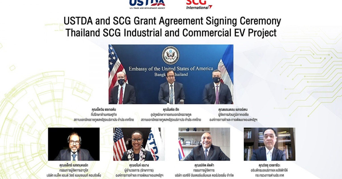 บริษัท เอสซีจี อินเตอร์เนชั่นแนล คอร์ปอเรชั่น จำกัด ในธุรกิจซีเมนต์และผลิตภัณฑ์ก่อสร้าง เอสซีจี ลงนามร่วมกับสำนักงานการค้าและการพัฒนาแห่งสหรัฐอเมริกา (USTDA) เพื่อการศึกษาและพัฒนาแผนงานสำหรับธุรกิจยานยนต์พลังงานไฟฟ้า นำร่องศึกษาการใช้งานสำหรับธุรกิจซีเมนต์และผลิตภัณฑ์ก่อสร้าง เอสซีจี
