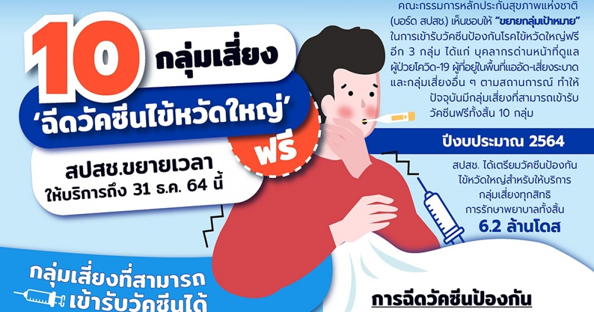 สปสช.ขยายฉีดวัคซีนไข้หวัดใหญ่ฟรีถึง 31 ธ.ค.64
