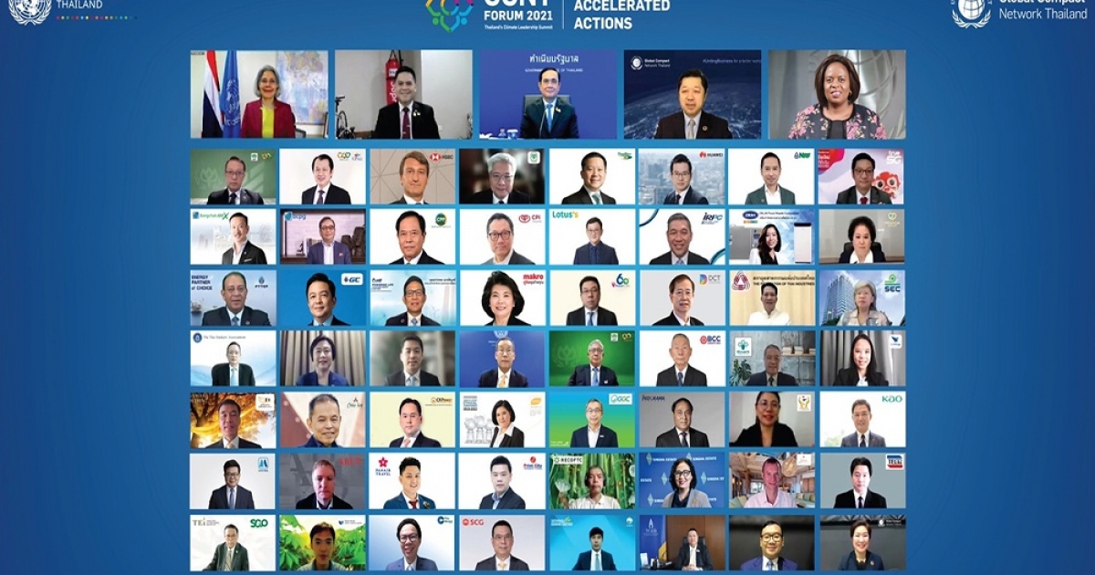 เมื่อเร็วๆ นี้ สมาคมเครือข่ายโกลบอลคอมแพ็กแห่งประเทศไทย (GCNT) ร่วมกับสหประชาชาติ (UN) จัดงานการประชุมสุดยอดระดับผู้นำของประเทศไทย “GCNT Forum 2021: Thailand’s Climate Leadership Summit 2021” ภายใต้แนวคิด “A New Era of Accelerated Actions” รวมพลังองค์กรสมาชิกสมาคมเครือข่ายโกลบอลคอมแพ็กฯ ซึ่งเป็นภาคีเครือข่ายด้านความยั่งยืนที่ใหญ่ที่สุดของประเทศ จัดเสวนาพร้อมร่วมประกาศเจตนารมณ์ว่าด้วย “การป้องกันและแก้ไขปัญหาอันเกิดจากการเปลี่ยนแปลงสภาพภูมิอากาศ” ผ่านรูปแบบออนไลน์ มีผู้นำจากภาครัฐ ประชาสังคม และภาคเอกชนจากหลากหลายองค์กรเข้า โดยได้รับเกียรติจาก พล.อ.ประยุทธ์ จันทร์โอชา นายกรัฐมนตรีเป็นประธานในงาน พร้อมด้วยนายวราวุธ ศิลปอาชา รัฐมนตรีว่าการกระทรวงทรัพยากรธรรมชาติและสิ่งแวดล้อม และนางสาวกีต้า ซับบระวาล (Gita Sabharwal) ผู้ประสานงานสหประชาชาติประจำประเทศไทย เป็นสักขีพยานในพิธีประกาศเจตนารมณ์ร่วมกันของภาคเอกชนและองค์กรต่างๆ กว่า 200 องค์กรทั่วประเทศ