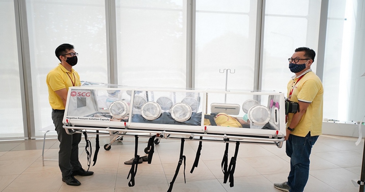ศุภธิดา รัตนสวัสดิ์ Medical and Wellbeing Business Manager ธุรกิจเคมิคอลส์ เอสซีจี ทีมพัฒนาแคปซูลเคลื่อนย้ายผู้ป่วยความดันลบเคลื่อนที่ เล่าถึงความตั้งใจที่จะช่วยลดการแพร่กระจายเชื้อโควิด 19 ระหว่างการเคลื่อนย้ายผู้ป่วยโควิด 19 เพื่อเข้ารับการรักษาว่าเป็น “โจทย์หลัก” ในการคิดค้นนวัตกรรม ซึ่งต้องทำให้ได้ตามมาตรฐานของการแพทย์ ทั้ง 1.) แคปซูลเคลื่อนย้ายผู้ป่วยความดันลบภายในโรงพยาบาลและรถพยาบาลที่นำผู้ป่วยจากบ้านไปยังโรงพยาบาล รวมถึง 2.) แคปซูลเคลื่อนย้ายผู้ป่วยความดันลบขนาดเล็ก สำหรับเข้าเครื่อง CT Scan เพื่อตรวจภาวะปอดติดเชื้อ จนปัจจุบันได้พัฒนาไปสู่ 3.) แคปซูลความดันลบสำหรับเคลื่อนย้ายผู้ป่วยทางอากาศ ซึ่งต้องพัฒนาและปรับมาตรฐานของแคปซูลให้เข้ากับมาตรฐานการบินด้วย โดยทั้งหมดเกิดขึ้นจากการทำความเข้าใจ ความต้องการของลูกค้า ต่อยอดและพัฒนาอย่างต่อเนื่อง