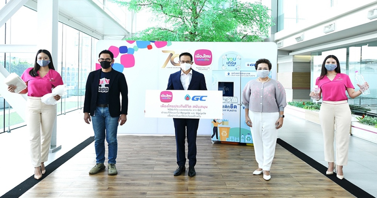 นายสาระ ล่ำซำ ประธานเจ้าหน้าที่บริหาร นางพิตราภรณ์ บุณยรัตพันธุ์ รองกรรมการผู้จัดการอาวุโส นายศรายุธ ทินกร ณ อยุธยา รองกรรมการผู้จัดการอาวุโส บริษัท เมืองไทยประกันชีวิต จำกัด (มหาชน) ร่วมสนับสนุนโครงการ “YOUเทิร์น” โดยบริษัท พีทีที โกลบอล เคมิคอล จำกัด (มหาชน) หรือ GC ซึ่งเป็นแพลตฟอร์มระบบบริหารจัดการพลาสติกใช้แล้วแบบครบวงจร พร้อมนำมาแปรรูปเพิ่มมูลค่าเป็นผลิตภัณฑ์ Recycle และ Upcycling ที่ใช้ได้ใหม่อีกหน พร้อมกันนี้ เมืองไทยประกันชีวิตยังได้รับมอบ “ถังขยะสีแดง” แบบลดการสัมผัส ด้วยการใช้เท้าเหยียบในการเปิดตัวถังและ “ถุงขยะสีแดง” สำหรับใส่ขยะมูลฝอยติดเชื้อ เพื่อนำมาใช้คัดแยกขยะติดเชื้อในองค์กร ช่วงที่สถานการณ์การแพร่ระบาดของโควิด-19 อีกด้วย โดยจุดรับพลาสติกใช้แล้ว (Drop Point) รวมถึงถังขยะสีแดง ตั้งอยู่ที่บริเวณ ชั้น 1 อาคาร 1, ชั้น 1 อาคาร 2 และอาคารหอประชุม เมืองไทยประกันชีวิต สำนักงานใหญ่ ทั้งนี้การคัดแยกขยะที่ได้จากโครงการ YOUเทิร์นของบริษัทฯ ตั้งแต่เริ่มโครงการจนถึงปัจจุบัน (เมษายน 2564 จนถึงปัจจุบัน) สามารถนำไปแปรรูปเป็นชุด PPE แล้วจำนวน 1,105 ชุด (19,894 ขวด)