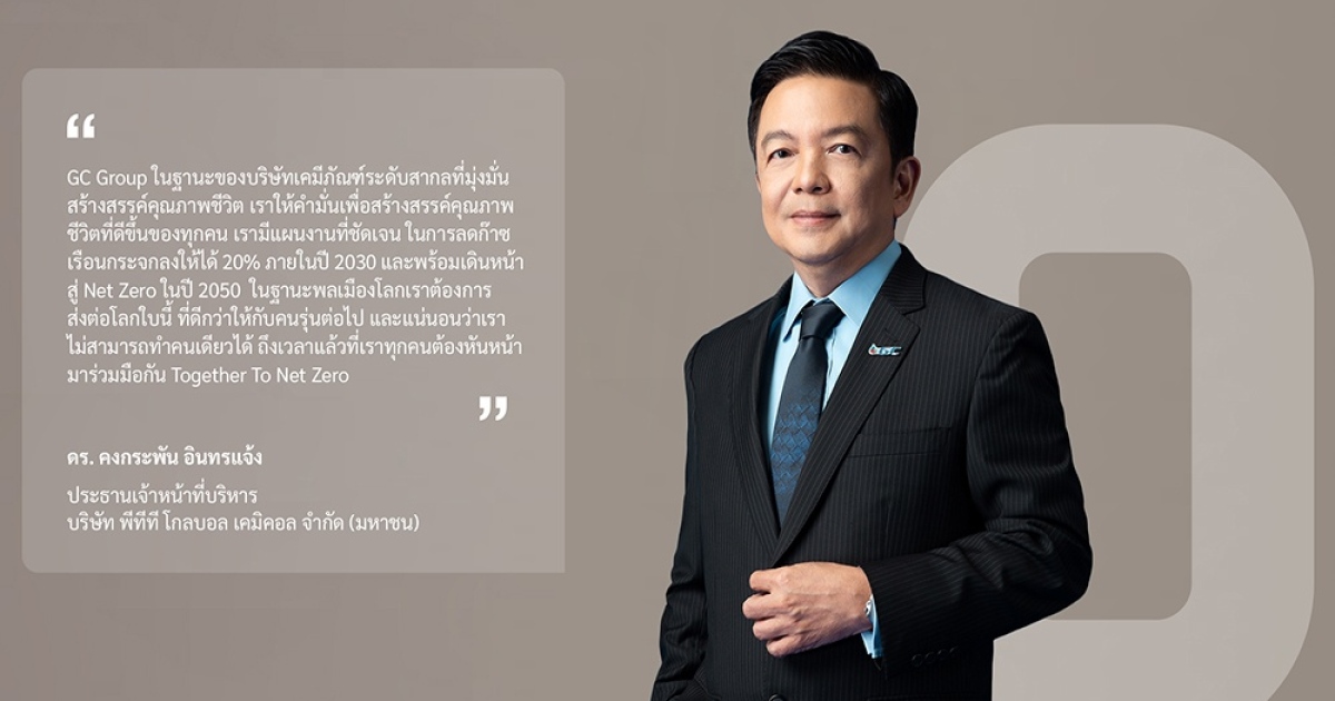 “ผมมีความภูมิใจที่จะประกาศความมุ่งมั่น 'Together To Net Zero' ซึ่งให้ความสำคัญต่อการสร้างความสมดุลระหว่างกลยุทธ์การเติบโตทางธุรกิจและผลลัพธ์ที่ยั่งยืน โดยได้กำหนดแผนงานที่ชัดเจนและตั้งเป้าหมายระยะกลางในการปล่อยก๊าซเรือนกระจกลดลง 20% ภายในปี 2573 เพื่อมุ่งสู่เป้าหมายการปล่อยก๊าซเรือนกระจกเป็นศูนย์ (Net Zero) ภายในปี 2593 ตามข้อตกลงปารีสว่าด้วยการเปลี่ยนแปลงสภาพภูมิอากาศ นอกจากนี้ เราวางแผนที่จะลดการปล่อยก๊าซเรือนกระจกในห่วงโซ่คุณค่า (value chain) ลดลง 50% เพื่อให้คู่ค้าและลูกค้าของเรา เข้ามามีส่วนในความมุ่งมั่นนี้ร่วมกัน ในฐานะพลเมืองโลกเราต้องการส่งต่อโลกใบนี้ ที่ดีกว่าให้กับคนรุ่นต่อไป และแน่นอนว่าเราไม่สามารถทำคนเดียวได้ ถึงเวลาแล้วที่เราทุกคนต้องหันหน้ามาร่วมมือกัน Together To Net Zero” ดร.คงกระพัน อินทรแจ้ง ประธานเจ้าหน้าที่บริหาร GC กล่าว
