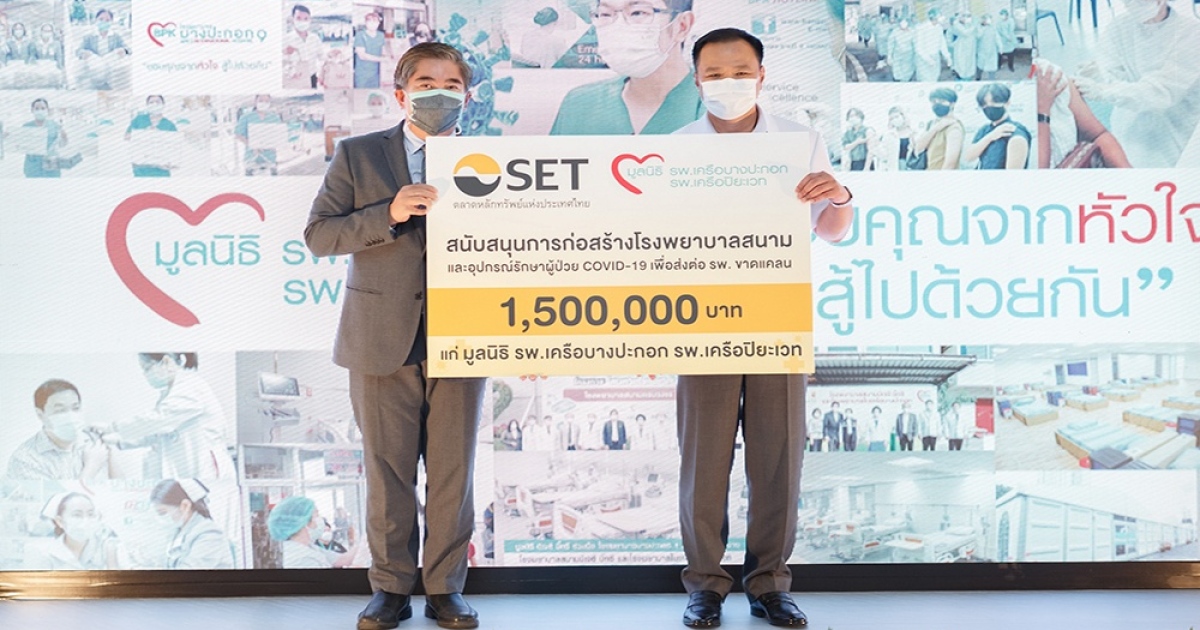 กีรติ โกสีย์เจริญ ผู้ช่วยผู้จัดการ หัวหน้ากลุ่มงานบัญชีและการเงิน และหัวหน้ากลุ่มงานบริหาร ตลาดหลักทรัพย์แห่งประเทศไทย มอบเงินจำนวน 1,500,000 บาท แก่มูลนิธิโรงพยาบาลเครือบางปะกอก โรงพยาบาลเครือปิยะเวท เพื่อนำไปสมทบทุนการก่อสร้างโรงพยาบาลสนาม และอุปกรณ์รักษาผู้ป่วยโควิด-19 รวมถึงเครื่อง Oxygen High Flow จำนวน 5 เครื่องให้แก่โรงพยาบาลที่ขาดแคลน โดยมี อนุทิน ชาญวีรกูล รองนายกรัฐมนตรีและรัฐมนตรีว่าการกระทรวงสาธารณสุข เป็นผู้รับมอบ ทั้งนี้ ตลาดหลักทรัพย์ฯ ได้มีการสมทบทุนผ่านองค์กร หน่วยงาน และมูลนิธิต่างๆ ต่อเนื่อง เพื่อส่งต่อความช่วยเหลือไปยังประชาชนและผู้ได้รับผลกระทบ หวังเป็นส่วนหนึ่งในการบรรเทาความเดือดร้อนแก่ประชาชนจากสถานการณ์ของโควิด-19