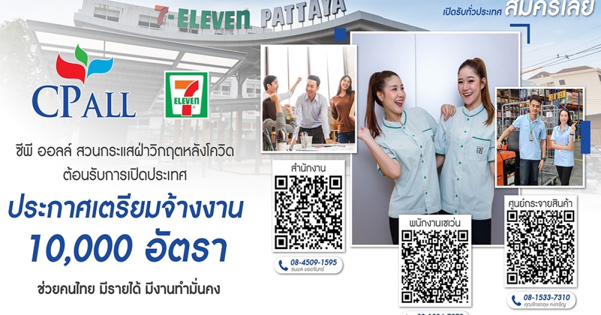 ทุกวิกฤต ย่อมมีโอกาส ซีพี ออลล์ เสริมทัพผู้นำธุรกิจค้าปลีกประกาศรับสมัครงาน 10,000 อัตราทั่วประเทศไทย ช่วยคนไทยมีงานทำ สร้างรายได้มั่นคง