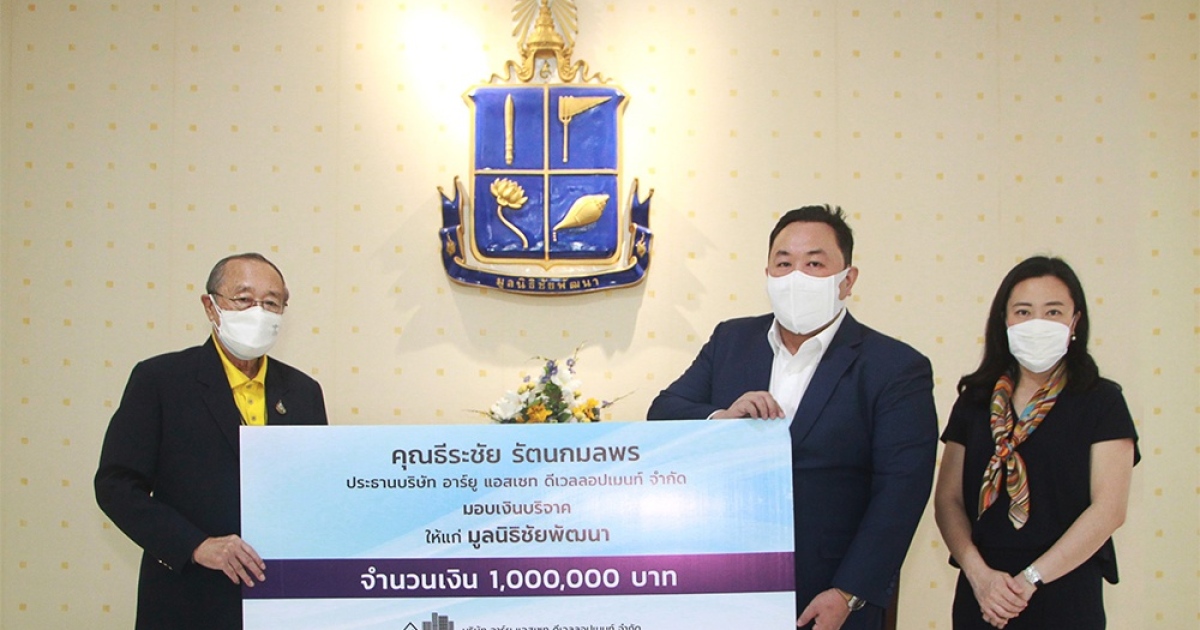 นายธีระชัย รัตนกมลพร ประธานบริษัท อาร์ยู แอสเซท ดีเวลลอปเมนท์ จำกัด พร้อมด้วยคุณธิดารัตน์ สุอมรรัตนกุล รองประธานบริษัทฯ ได้มอบเงินจำนวน 1,000,000 บาท ให้แก่มูลนิธิชัยพัฒนา เพื่อช่วยเหลือผู้ประสบภัยน้ำท่วม และฟื้นฟูภายหลังจากเหตุการณ์อุทกภัย ให้แก่ประชาชนที่ได้รับความเดือนร้อน โดยมี ดร.สุเมธ ตันติเวชกุล เลขาธิการมูลนิธิชัยพัฒนา เป็นผู้รับมอบเมื่อวันที่ 8 พฤศจิกายน 2564 ณ มูลนิธิชัยพัฒนา