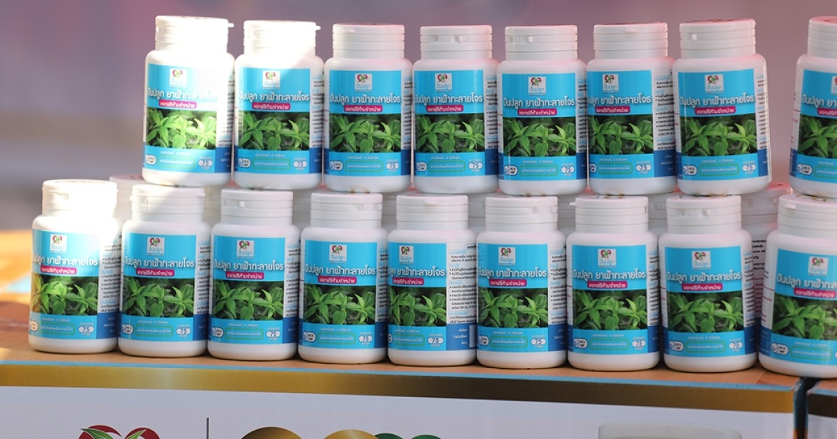 โครงการ "ซีพี ปันปลูก ฟ้าทะลายโจร" เครือซีพีจัดพื้นที่สำหรับปลูกต้นฟ้าทะลายโจร จำนวน 100 ไร่ ที่ศูนย์วิจัยแสลงพัน และฟาร์มคำพราน จ.สระบุรี เริ่มปลูกตั้งแต่วันที่ 12 สิงหาคม 2564 เพื่อผลิตสมุนไพรฟ้าทะลายโจรแจกฟรี 30 ล้านแคปซูล มอบองค์กรพันธมิตร โรงพยาบาล หน่วยงานภาครัฐ-เอกชน สถาบันการศึกษา มูลนิธิและกลุ่มจิตอาสาในพื้นที่ต่าง ๆ รวมทั้งพื้นที่ที่ยังมีความเสี่ยงต่อการติดเชื้อโควิด-19 ซึ่งแปลงปลูกฟ้าทะลายโจรนี้ที่ได้การรับรองมาตรฐานการปฏิบัติทางการเกษตรที่ดี (GAP) จากกรมวิชาการเกษตร กระทรวงเกษตรและสหกรณ์ และการบรรจุแคปซูลก็ผ่านการรับรองมาตรฐานจาก GMP PIC/S ซึ่งเป็นมาตรฐานสำคัญของโรงงานผลิตยา