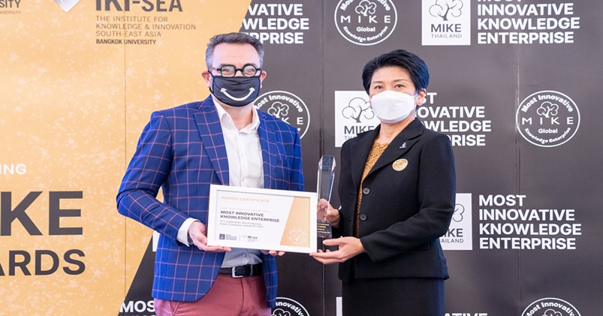 นางนาถฤดี โฆสิตาภัย รองกรรมการผู้จัดการใหญ่ กลุ่มงานกลยุทธ์และพัฒนาธุรกิจ บริษัท ปตท.สำรวจและผลิตปิโตรเลียม จำกัด (มหาชน) หรือ ปตท.สผ. รับรางวัลสุดยอดองค์กรด้านนวัตกรรมและองค์ความรู้ ประจำปี 2564 (Thailand Most Innovative Knowledge Enterprise Award 2021) หรือ MIKE Award ในระดับความเป็นเลิศเทียบเท่าสากล (Gold Level) ซึ่งเป็นรางวัลสูงสุด จาก ดร.วินเซนต์ ริเบียร์ กรรมการผู้จัดการ สถาบันที่ปรึกษาด้านการจัดการความรู้และนวัตกรรมเอเชียตะวันออกเฉียงใต้ (IKI-SEA) มหาวิทยาลัยกรุงเทพ จากการที่ ปตท.สผ. มีการส่งเสริมการสร้างสรรค์นวัตกรรมและองค์ความรู้อย่างเป็นระบบ ทั้งภายในองค์กรและร่วมกับพันธมิตรในหลายภาคส่วน ตลอดจนมีวัฒนธรรมองค์กรที่สนับสนุนการคิดค้นเทคโนโลยีและนวัตกรรมอย่างต่อเนื่องเพื่อการเติบโตอย่างยั่งยืน