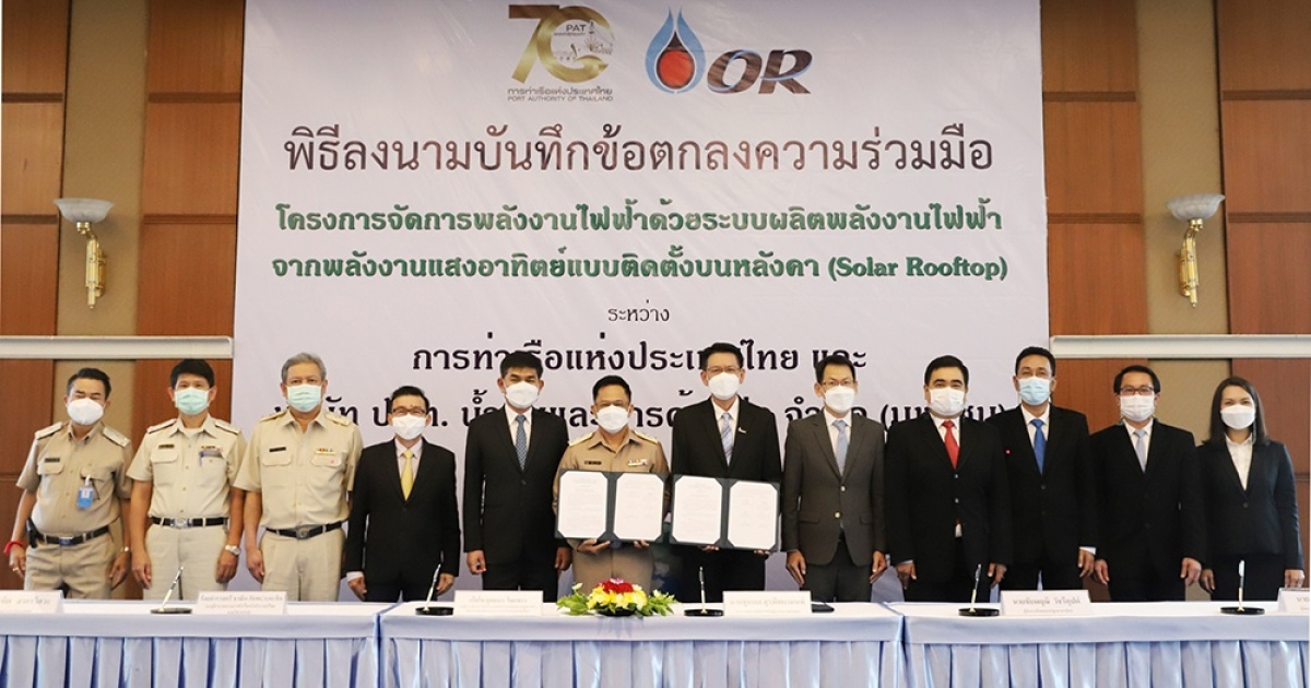 เรือโท ยุทธนา โมกขาว รองผู้อำนวยการการท่าเรือแห่งประเทศไทย (กทท.) สายบริหารการเงินและกลยุทธ์องค์กร และ นายชุมพล สุรพิทยานนท์ รองกรรมการผู้จัดการใหญ่การตลาดพาณิชย์ บริษัท ปตท. น้ำมันและการค้าปลีก จำกัด (มหาชน) หรือ โออาร์ ร่วมลงนามบันทึกข้อตกลงความร่วมมือ (MOU) ในโครงการจัดการพลังงานไฟฟ้าด้วยระบบผลิตไฟฟ้าจากพลังงานแสงอาทิตย์แบบติดตั้งบนหลังคา (Solar Rooftop) เพื่อใช้ในพื้นที่ท่าเรือกรุงเทพ ซึ่งคาดว่าจะสามารถผลิตกระแสไฟฟ้าได้เทียบเท่ากับกระแสไฟฟ้าที่ใช้ในครัวเรือนถึงกว่า 2,700 ครัวเรือนต่อปี ช่วยลดการปล่อยก๊าซเรือนกระจกได้ปีละกว่า 2,910 ตัน หรือเทียบเท่าการปลูกต้นไม้เพิ่มขึ้นปีละ 62,547 ตันต่อปี ซึ่งไม่เพียงแต่จะเป็นการสร้างความมั่นคงทางพลังงาน ลดค่าใช้จ่าย ยังเป็นมิตรต่อสิ่งแวดล้อม ซึ่งสอดคล้องกับแนวทางการดำเนินธุรกิจของ โออาร์ ในการเป็น Energy Solution Provider ในการทำงานร่วมกับลูกค้าหรือคู่ค้าเพื่อเสาะหาทางเลือกด้านพลังงานสะอาดที่ตอบโจทย์ผู้เกี่ยวข้องทุกฝ่ายอย่างดีที่สุด เพื่อการเติบโตไปด้วยกันอย่างยั่งยืน กับพันธมิตร สังคมชุมชนและสิ่งแวดล้อม