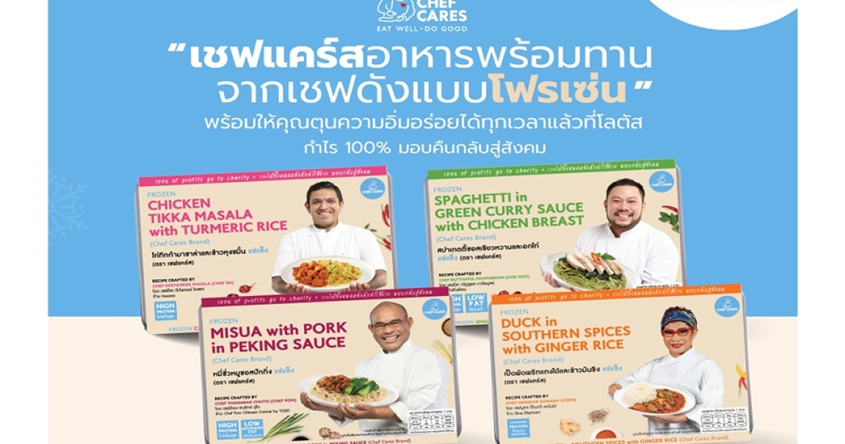 อาหารสำเร็จรูปพร้อมรับประทานแบรนด์ “เชฟแคร์ส” ได้รับการตอบรับจากผู้บริโภคอย่างอบอุ่น พร้อมเสียงเรียกร้องให้ผลิต “อาหารแช่แข็ง” เพื่อให้ทุกคนตุนความอร่อยไว้ที่บ้านได้นานวัน เพราะสามารถตอบโจทย์ความอิ่มในมื้อเร่งด่วน ที่อัดแน่นด้วยคุณค่าทางโภชนาการในปริมาณที่มากกว่าเดิม นำร่องด้วย 4 สุดยอดเมนูคุณภาพจากเชฟดัง ได้แก่ 1.) ไก่ทิกก้ามาซาล่า โดยเชฟดีปังเคอร์ โคสลา 2.) เป็ดผัดพริกแกงใต้และข้าวมันขิง โดยเชฟนูรอ โซ๊ะมณี สเต๊ปเป้ 3.) สปาเก็ตตี้ซอสเขียวหวานและอกไก่ โดยเชฟนิค ภวไพบูลย์ และ 4.) หมี่ซั่วหมูซอสปักกิ่ง โดยเชฟป้อม ธนรักษ์ ... พิสูจน์ความอิ่มอร่อยที่ได้บุญไปพร้อมกันได้แล้ววันนี้ที่ โลตัส ซูเปอร์เซ็นเตอร์ ในราคาเพียง 79-89 บาท รายได้หลังหักค่าใช้จ่ายทั้งหมด มอบคืนสู่สังคมผ่านมูลนิธิเชฟแคร์ส