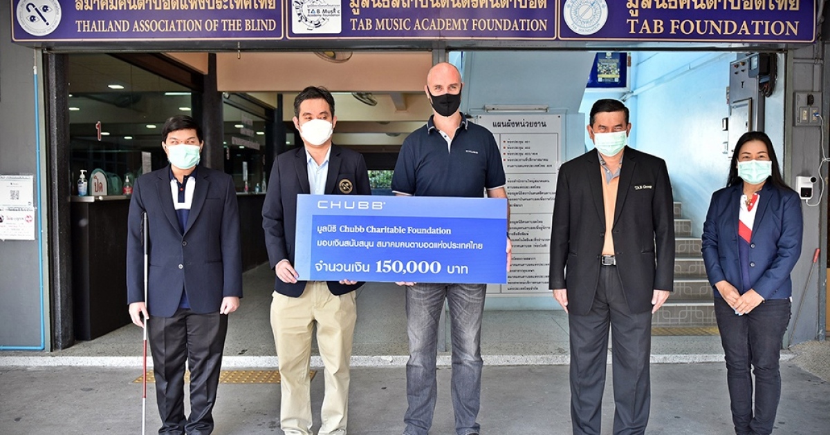 นายแอนดรูว์ นิสเบ็ท ประธานเจ้าหน้าที่บริหาร บริษัท ชับบ์สามัคคีประกันภัย จำกัด (มหาชน) เป็นผู้แทน มอบเงินบริจาคจำนวน 150,000 บาท ในนามมูลนิธิ Chubb Charitable Foundation ให้แก่สมาคมคนตาบอดแห่งประเทศไทย เพื่อนำไปจัดทำถุงยังชีพ ช่วยเหลือผู้พิการทางสายตาที่ได้รับผลกระทบจากสถานการณ์โควิด-19 โดยมีนายเอกกมล แพทยานันท์ นายกสมาคม เป็นผู้แทนการรับมอบ ณ สมาคมคนตาบอดแห่งประเทศไทย