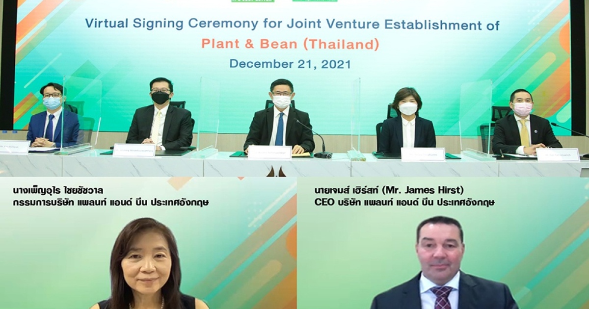 นายเจมส์ เฮิร์สท์ (Mr. James Hirst) CEO บริษัท แพลนท์ แอนด์ บีน ประเทศอังกฤษ กล่าวว่า จากประสบการณ์กว่า 20 ปี ในอุตสาหกรรมอาหาร บริษัทได้มีการพัฒนาคุณภาพผลิตภัณฑ์โปรตีนจากพืชอย่างต่อเนื่อง โดยใช้เทคโนโลยีเข้ามาช่วยในการปรับปรุงรสชาติ เนื้อสัมผัส และรูปลักษณ์ ควบคู่ไปกับการพัฒนากระบวนการผลิต ซึ่งความร่วมมือในการตั้ง Plant & Bean (Thailand) ในครั้งนี้ จะส่งเสริมให้บริษัทมีความพร้อมรองรับความร่วมมือกับพันธมิตรแบรนด์ต่าง ๆ ที่ต้องการพัฒนากลุ่มผลิตภัณฑ์โปรตีนจากพืชคุณภาพสูง สามารถทำให้ผู้ประกอบการรายย่อย และผู้บริโภคเข้าถึงได้