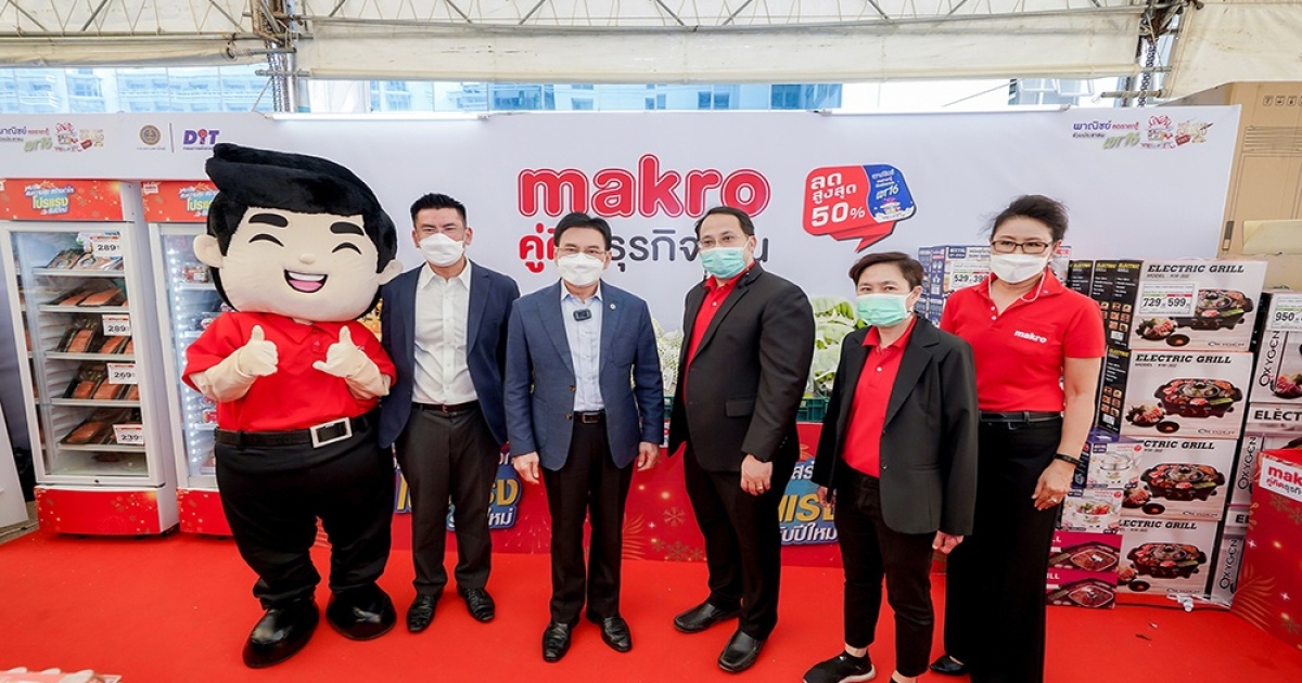 นายจุรินทร์ ลักษณวิศิษฏ์ รองนายกรัฐมนตรีและรัฐมนตรีว่าการกระทรวงพาณิชย์ (ที่ 3 จากซ้าย) และนายวัฒนศักย์ เสือเอี่ยม อธิบดีกรมการค้าภายใน (ที่ 2 จากซ้าย) และคณะ ให้เกียรติเยี่ยมชมบูธจัดแสดงสินค้าของ แม็คโคร ซึ่งนำสินค้าอาหารสดคุณภาพ ทั้ง เนื้อวัว ปลาแซลมอน ไข่ไก่ ผลไม้จากเกษตรกรไทย ผลไม้นำเข้า และสินค้าอุปโภค ฯลฯ มาจำหน่ายภายในงานเปิดตัวแคมเปญใหญ่ “พาณิชย์ลดราคา! ช่วยประชาชน New Year Grand Sale 2022” ณ กระทรวงพาณิชย์ สนามบินน้ำ โดยมี นายวัตรภู กาญจนะ ผู้จัดการเขต 10 บริษัท สยามแม็คโคร จำกัด (มหาชน) และ นางสาวทิพวรรณ เสนีย์วงศ์ ณ อยุธยา ผู้จัดการทั่วไป แม็คโคร สาขาบางบัวทอง ให้การต้อนรับ นอกจากนี้ในแม็คโครทุกสาขาทั่วประเทศ รวมถึงการสั่งสินค้าผ่านออนไลน์ แม็คโครคลิก ยังร่วมจัดรายการภายใต้แคมเปญดังกล่าว เพื่อส่งของขวัญให้พี่น้องประชาชนแบบข้ามปี ตั้งแต่วันนี้ถึง 31 มกราคม พ.ศ.2565 นี้ด้วย