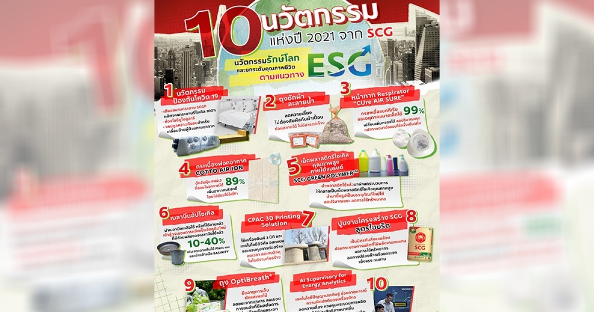 10 นวัตกรรมรักษ์โลก พร้อมยกระดับคุณภาพชีวิต แห่งปี 2021 ตามแนวทาง ESG จาก SCG