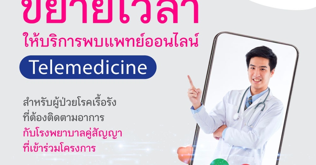 เมืองไทยประกันชีวิต ขยายระยะเวลาให้บริการ Telemedicine สำหรับผู้ป่วยโรคเรื้อรัง รักษาตัวต่อเนื่อง พร้อมเดินหน้าผนึกโรงพยาบาลคู่สัญญาเพิ่มเป็น 38 แห่ง