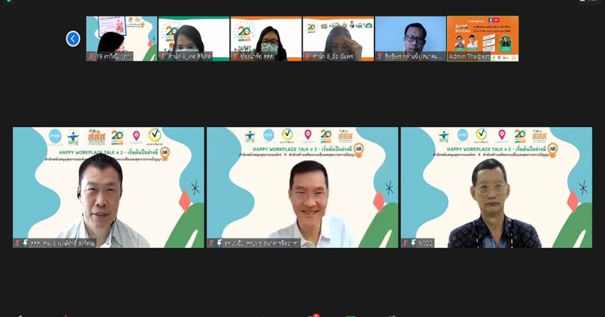 ทั้งนี้ สสส. จะจัดเสวนาออนไลน์ Happy Workplace Talk Series ต่อเนื่องเป็นประจำทุกเดือน ตลอดปี 2565 ติดตามข้อมูลได้ที่เว็บไซต์ www.happy8workplace.com หรือเฟซบุ๊กแฟนเพจ Happy8Workplace และ สสส.