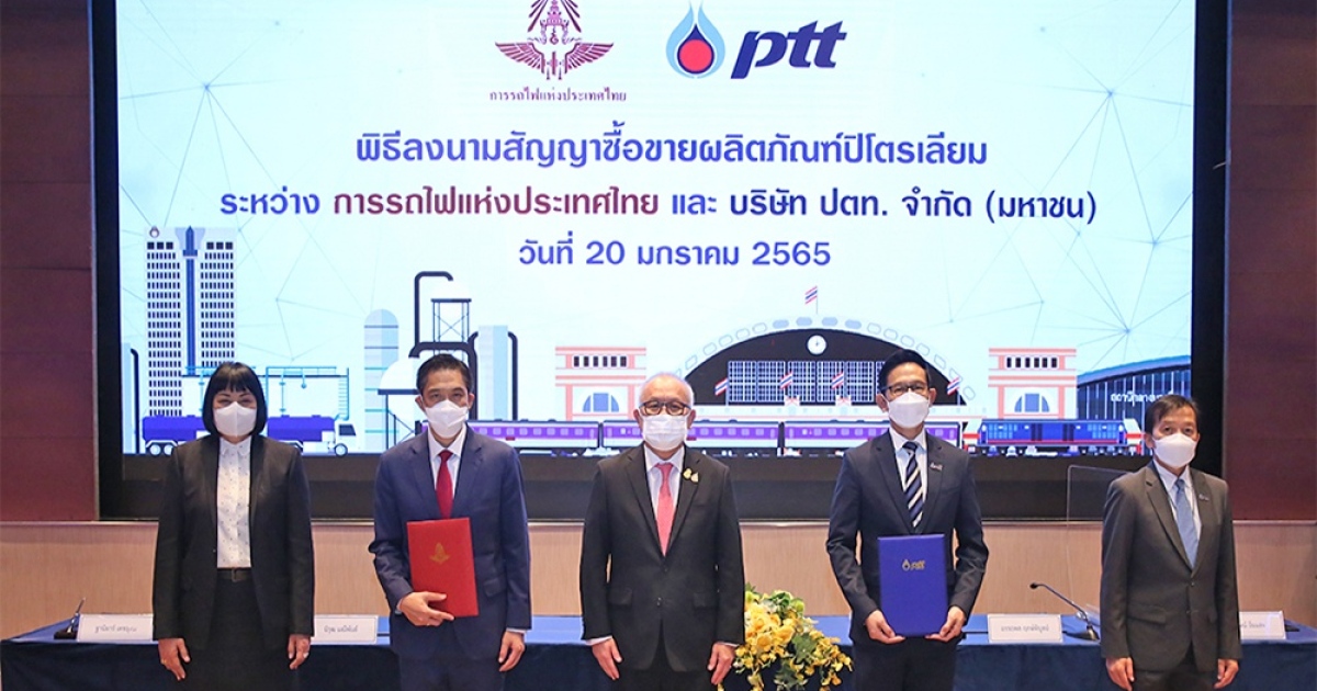 เมื่อวันที่ 20 มกราคม 2565 นายสุพัฒนพงษ์ พันธ์มีเชาว์ รองนายกรัฐมนตรีและรัฐมนตรีว่าการกระทรวงพลังงาน (กลาง) เป็นประธานในพิธีลงนามสัญญาซื้อขายผลิตภัณฑ์ปิโตรเลียม ระหว่าง การรถไฟแห่งประเทศไทย และ บริษัท ปตท. จำกัด (มหาชน) โดยนายอรรถพล ฤกษ์พิบูลย์ ประธานเจ้าหน้าที่บริหารและกรรมการผู้จัดการใหญ่ ปตท. (ที่ 2 จากขวา) และ นายนิรุฒ มณีพันธ์ ผู้ว่าการรถไฟแห่งประเทศไทย (ที่ 2 จากซ้าย) เป็นผู้ลงนาม ทั้งนี้ ปตท. สนับสนุนส่วนลดค่าใช้จ่ายด้านเชื้อเพลิงให้แก่การรถไฟแห่งประเทศไทยคิดเป็นจำนวน 810 ล้านบาท ตลอดระยะเวลาสัญญา 10 ปี (2565 - 2575) เพื่อให้บริการขนส่งสาธารณะแก่ประชาชนผู้โดยสารรถไฟในประเทศและเป็นประโยชน์ต่อส่วนรวมต่อไป