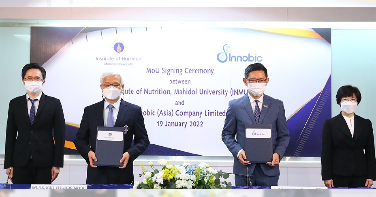 สถาบันโภชนาการ มหาวิทยาลัยมหิดล ร่วมกับ อินโนบิก (เอเซีย) ลงนามความร่วมมือ “พัฒนาสูตรและกรรมวิธีการผลิตอาหารปั่นผสมชนิด UHT” สำหรับผู้สูงอายุ และผู้ป่วยที่ไม่สามารถทานอาหารปกติ