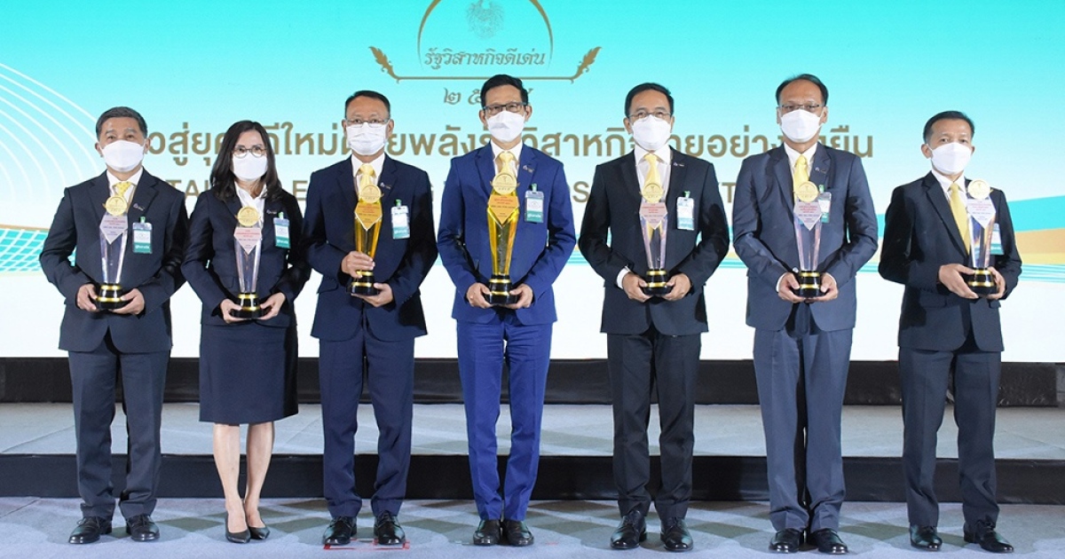 เมื่อเร็ว ๆ นี้ – ศ.ดร.ทศพร ศิริสัมพันธ์ ประธานกรรมการ (ที่ 3 จากซ้าย) นายอรรถพล ฤกษ์พิบูลย์ ประธานเจ้าหน้าที่บริหารและกรรมการผู้จัดการใหญ่ และผู้บริหารของบริษัท ปตท. จำกัด (มหาชน) (กลาง) พร้อมคณะผู้บริหาร ปตท. รับมอบ 7 รางวัลรัฐวิสาหกิจดีเด่น ประจำปี 2564 ประกอบด้วย รางวัลรัฐวิสาหกิจยอดเยี่ยม ประจำปี 2564 รางวัลคณะกรรมการรัฐวิสาหกิจดีเด่น (ประเภทเกียรติยศ) รางวัลการบริหารจัดการองค์กรดีเด่น รางวัลการเปิดเผยข้อมูลและความโปร่งใสดีเด่น รางวัลการดำเนินงานเพื่อสังคมและสิ่งแวดล้อมดีเด่น รางวัลความคิดสร้างสรรค์ดีเด่น และรางวัลนวัตกรรมดีเด่น สะท้อนถึงการบริหารจัดการที่มีประสิทธิภาพของ ปตท. ยึดหลักธรรมาธิบาล ร่วมเพิ่มขีดความสามารถของประเทศและยกระดับคุณภาพชีวิตประชาชน สังคม ด้วยนวัตกรรมความคิดสร้างสรรค์ พร้อมมุ่งมั่นดูแลสิ่งแวดล้อมอย่างยั่งยืน