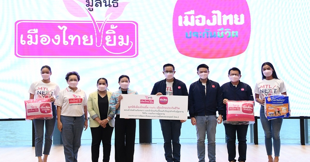 บริษัท เมืองไทยประกันชีวิต จำกัด (มหาชน) โดยนายสาระ ล่ำซำ ประธานเจ้าหน้าที่บริหาร ดร.สุธี โมกขะเวส กรรมการผู้จัดการ และนายปราโมทย์ ศักดิ์กำจร รองกรรมการผู้จัดการอาวุโส ร่วมกับมูลนิธิเมืองไทยยิ้ม โดยนางพิตราภรณ์ บุณยรัตพันธุ์ รองประธานกรรมการมูลนิธิเมืองไทยยิ้ม มอบผ้าห่มนวมกันหนาวและผ้าอ้อมกันเปื้อนสำเร็จรูปสำหรับผู้สูงอายุ ให้แก่ กรมกิจการผู้สูงอายุ กระทรวงการพัฒนาสังคมและความมั่นคงของมนุษย์ (พม.) สำหรับใช้ในการดูแลผู้สูงอายุที่ไม่สามารถช่วยเหลือตัวเองได้และผู้สูงอายุป่วยติดเตียงที่อยู่ในการดูแลของกรมกิจการผู้สูงอายุ โดยมีนางสาวอาภา รัตนพิทักษ์ ผู้อำนวยการกองส่งเสริมสวัสดิการและคุ้มครองสิทธิผู้สูงอายุ นางสาวปิยะนุช นาคแก้ว รักษาการผู้อำนวยการกลุ่มส่งเสริมสวัสดิการสังคม รับมอบ ณ ศูนย์การเรียนรู้ สรรค์สาระ เมืองไทยประกันชีวิต