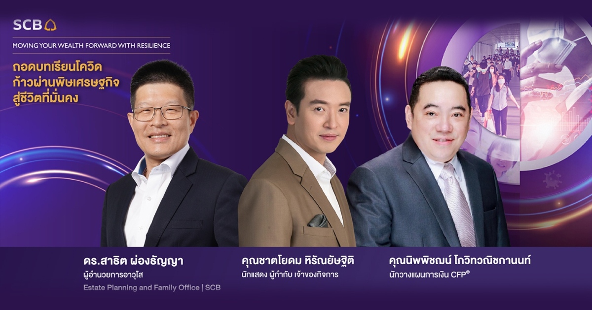 ธนาคารไทยพาณิชย์ จัดสัมมนาออนไลน์ ให้กับลูกค้ากลุ่ม Wealth ในหัวข้อ “ถอดบทเรียนโควิดก้าวผ่านพิษเศรษฐกิจสู่ชีวิตที่มั่นคง” โดยมี ดร. สาธิต ผ่องธัญญา ผู้อำนวยการอาวุโส Estate Planning and Family office ธนาคารไทยพาณิชย์ นายชาตโยดม หิรัณยัษฐิติ นักแสดง ผู้กำกับและเจ้าของกิจการ และนายนิพพิชฌน์ โกวิทวณิชกานนท์ นักวางแผนการเงิน CFP® เพื่อเป็นกลยุทธ์และแนวทางให้กับลูกค้าในการวางแผนการเงินและบริหารทรัพย์สินให้สามารถก้าวผ่านวิกฤติต่างๆไปได้อย่างมั่นคง จากการถอดบทเรียนของโควิด-19