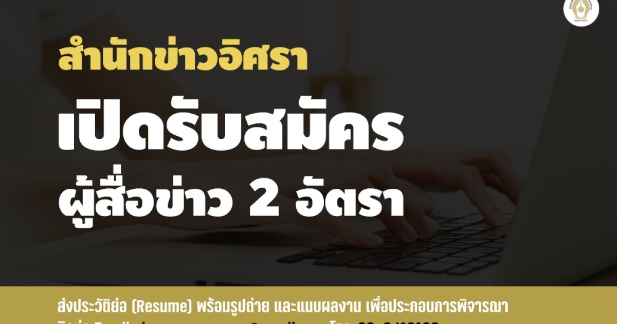 สำนักข่าวอิศรา (www.isranews.org) เปิดรับสมัครพนักงานตำแหน่งผู้สื่อข่าวจำนวน 2 อัตรา