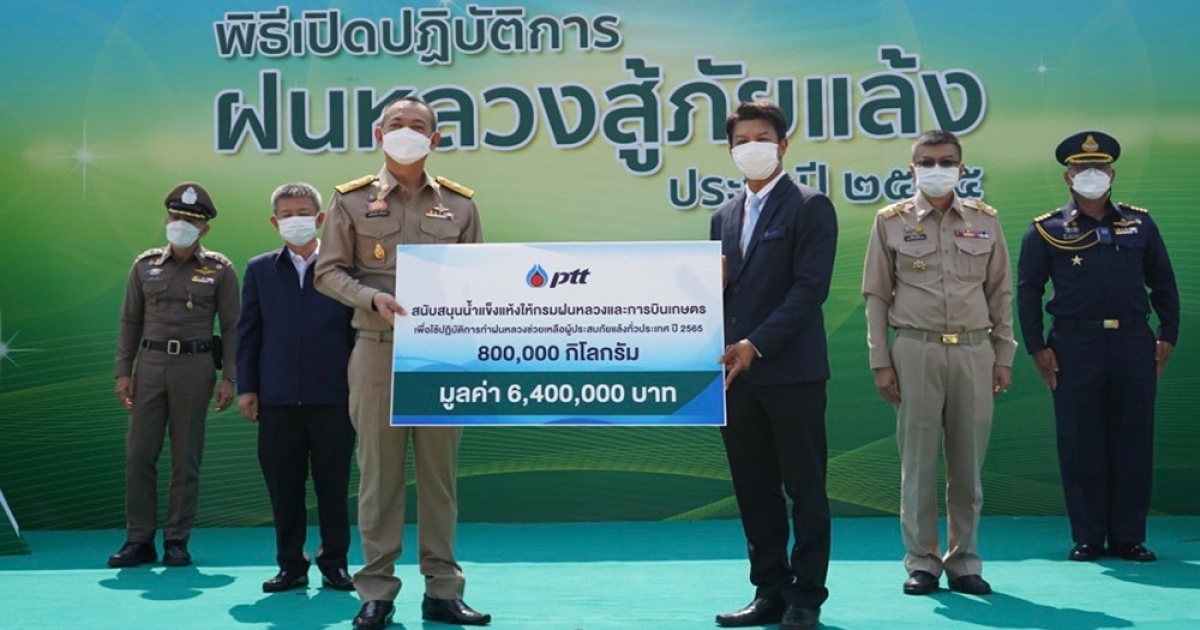 ปตท. ได้สนับสนุนน้ำแข็งแห้งเพื่อทำฝนหลวง ตามพระราชดำริของพระบาทสมเด็จพระบรม ชนกาธิเบศร มหาภูมิพลอดุลยเดชมหาราช บรมนาถบพิตร มาอย่างต่อเนื่องตั้งแต่ปี พ.ศ. 2541 จวบจนปัจจุบันเป็นปีที่ 24 ได้สนับสนุนน้ำแข็งแห้งไปแล้วกว่า 12,900 ตัน คิดเป็นมูลค่ากว่า 103.2 ล้านบาท น้ำแข็งแห้งดังกล่าวเกิดจากการนำก๊าซคาร์บอนไดออกไซด์ที่ได้จากกระบวนการแยกก๊าซธรรมชาติมาใช้ให้เกิดประโยชน์ต่อประเทศและสิ่งแวดล้อม
