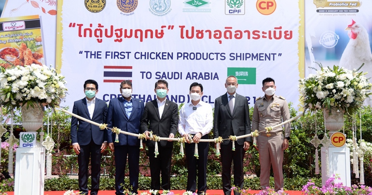 นายจุรินทร์ ลักษณวิศิษฏ์ รองนายกรัฐมนตรีและรัฐมนตรีว่าการกระทรวงพาณิชย์ พร้อมด้วย นายภูสิต รัตนกุล เสรีเริงฤทธิ์ อธิบดีกรมส่งเสริมการค้าระหว่างประเทศ นายวัฒนศักย์ เสือเอี่ยม อธิบดีกรมการค้าภายในพล.ต.ต.สุรินทร์ ปาลาเร่ เลขาธิการคณะกรรมการกลางอิสลามแห่งประเทศไทย รวมทั้ง นายประสิทธิ์ บุญดวงประเสริฐ ประธานคณะผู้บริหาร และคณะผู้บริหาร ซีพีเอฟ ร่วมปล่อยตู้คอนเทนเนอร์ปฐมฤกษ์ผลิตภัณฑ์เนื้อไก่ ออกจากโรงงานแปรรูปไก่เนื้อ มีนบุรี 2 ไปยังซาอุดิอาระเบีย นับเป็นไก่ล็อตแรกของไทยในรอบ 18 ปี ตั้งแต่ปี 2547 ตามมาตรการห้ามนำเข้าเนื้อไก่ ไข่ไก่ และผลิตภัณฑ์ไก่จากประเทศไทย ล่าสุด รัฐบาลซาอุฯ ได้ประกาศรับรองอนุญาตให้นำเข้าผลิตภัณฑ์สัตว์ปีกของไทยจากโรงงาน 11 แห่ง ในจำนวนนี้ มีโรงงานของซีพีเอฟ 5 แห่ง สามารถผ่านการรับรองมาตรฐาน ประกอบด้วย โรงงานชำแหละไก่มีนบุรี โรงงานแปรรูปไก่เนื้อมีนบุรี 1 โรงงานแปรรูปไก่เนื้อมีนบุรี 2 โรงงานชำแหละไก่สระบุรี และโรงงานแปรรูปไก่เนื้อสระบุรี