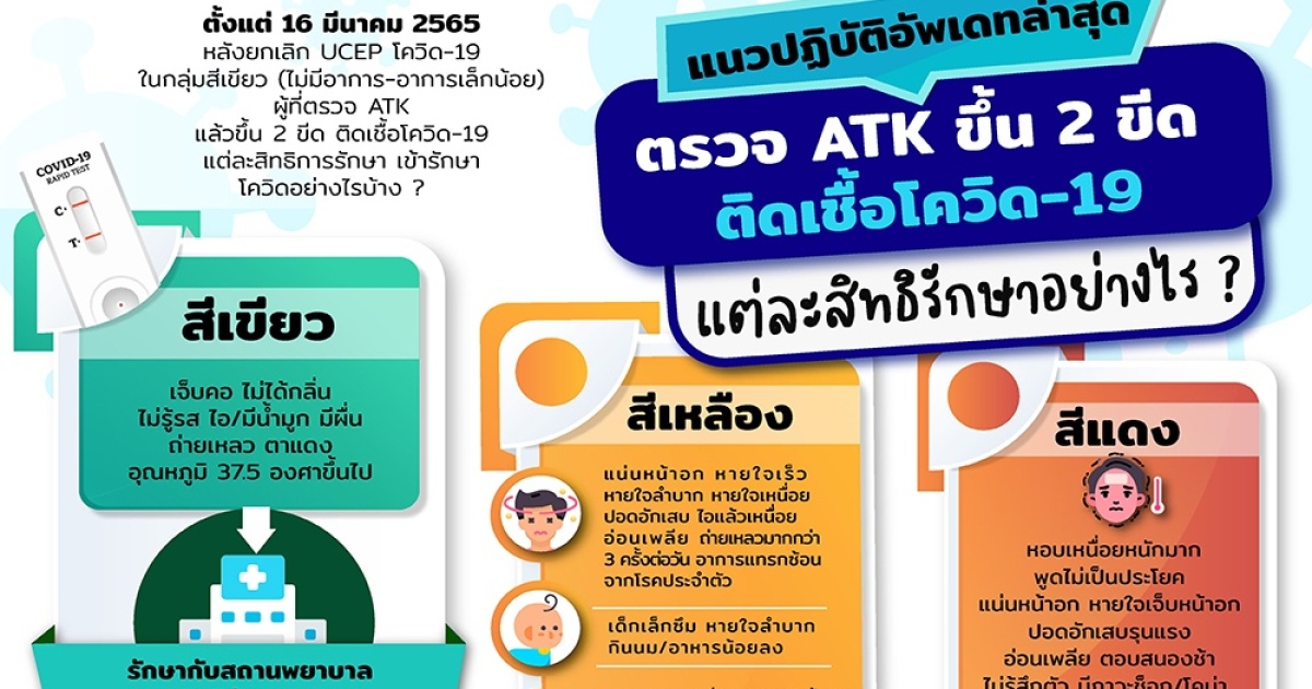 นพ.จเด็จ ธรรมธัชอารี เลขาธิการสำนักงานหลักประกันสุขภาพแห่งชาติ (สปสช.) กล่าวว่า จากการปรับแนวทางการรักษาผู้ติดเชื้อใหม่แนวทางใหม่ของกระทรวงสาธารณสุข (สธ.) ทั้งแนวทางผู้ป่วยนอกและแยกกักตัวที่บ้าน (OPD Self Isolation) หรือ เจอ แจก จบ ซึ่งเริ่มตั้งแต่วันที่ 1 มีนาคม 2565 เป็นต้นมา และการปรับ UCEP โควิด เป็น UCEP Plus ตั้งแต่วันที่ 16 มีนาคม 2565 โดยให้ผู้ติดเชื้อโควิด-19 ในกลุ่มสีเหลืองและสีแดง เข้าเกณฑ์เจ็บป่วยฉุกเฉินที่ใช้สิทธิ UCEP หรือรักษาเจ็บป่วยฉุกเฉินได้ทุกที่ สำหรับผู้ป่วยกลุ่มสีเขียวที่เป็นกลุ่มไม่มีอาการหรืออาการเล็กน้อย เข้ารักษาตามแนวทางเจอ แจก จบนั้น
